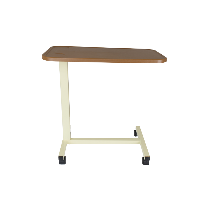 - For ease of cleaning, this over-bed table has a lightweight plastic top.